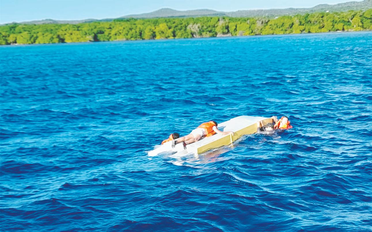 hendenan, dos hende homber y dos hende muher abordo di e Metal Shark. E personanan a declara cu nan a sali cu e boto pa bai test esaki y un ola a bolter e boto. Wardacosta a hiba e personanan y e boto na e ex pier di 'Brisas del Mar'. E personanan a pasa den un susto pero