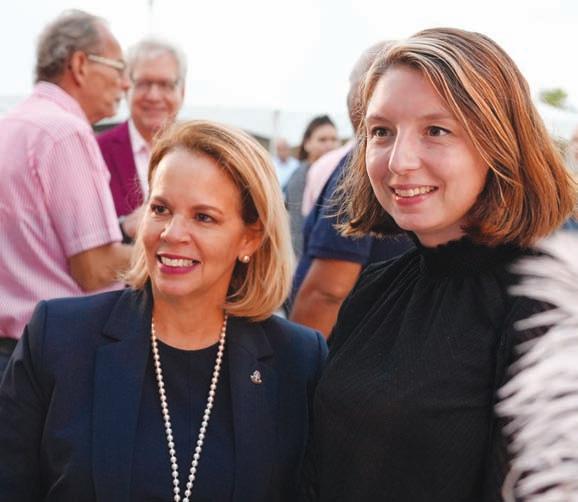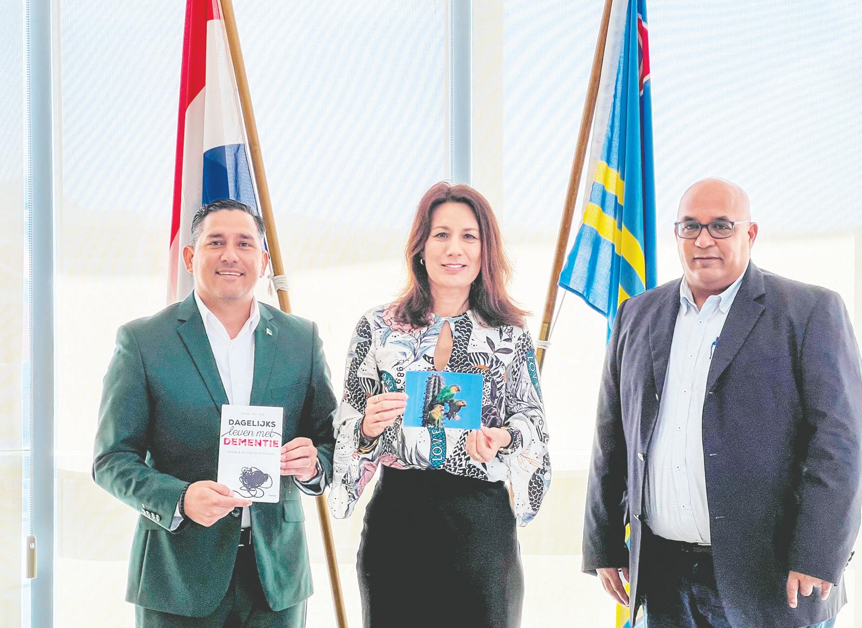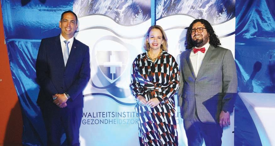 Jan Noordzij, Gerente di “Advance Human Resources Services” Rosabelle Illes, PHD, Psicologo y Profesora asistente na Universidad di Aruba Durante un evento special na Juni, lo anuncia e cuater ganadornan di AHATA Impact Award 2023.