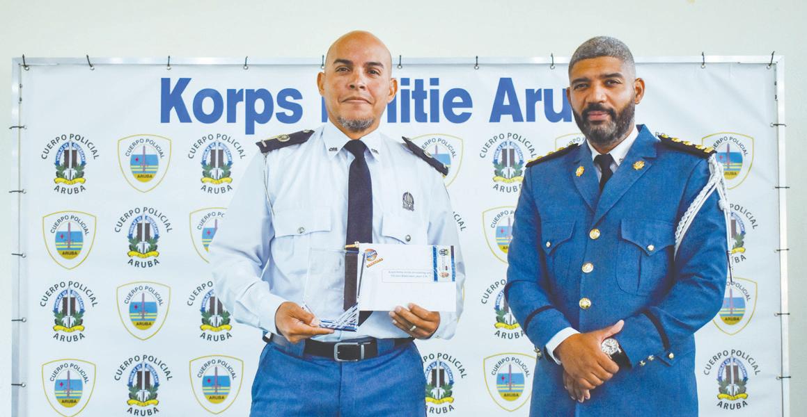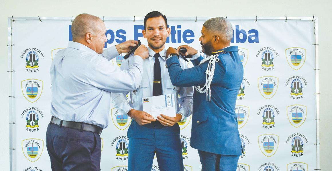 Den un evento ameno na auditorium di J.FK. altocomisario di Polis Sr. Ramon Arnhem a haci entrega di decreto gubernamental, hubilario y reconocimento na agentenan policial y personal administrativo. Altocomisario Arnhem a cambia rango di un agente policial extra ordinario cu durante su trabou como agente policial a haya un accidente pisa cu t’e ainda e ta recuperando di su salud. Ta trata aki di polis A. CROES. Un polis cu maske tur e retonan cu ela wordo confronta cune a keda positivo y sigui brinda Aruba cu su servicio sin igual. Cu su pasion y determinación nos ta mira cu e tin e curason di Polis pa maske con difícil e circumstancianan por ta, e la sigui padilanti. Nos ta yama Sr. CROES danki pa su determinación y awor por conta cu un rango mas halto for di Brigadier eerste klasse pa Hoofdagent.