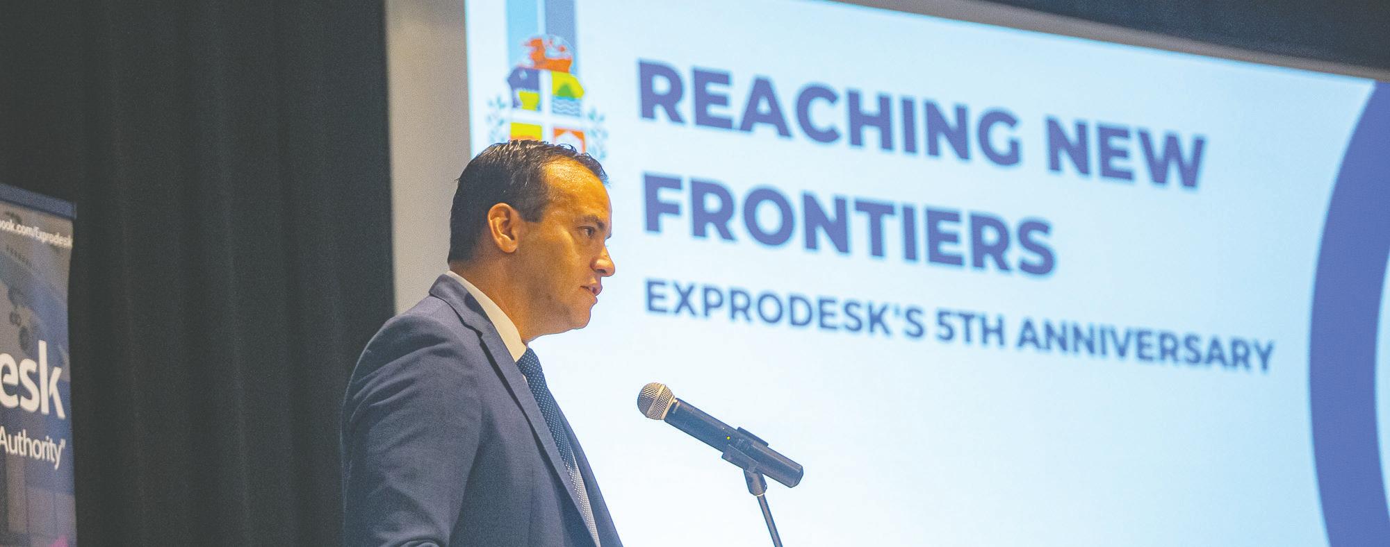 Minister Geoffrey Wever tabata presente pa inicio di e evento celebratorio di Exprodesk su di 5 aniversario: Reaching New Frontiers.
