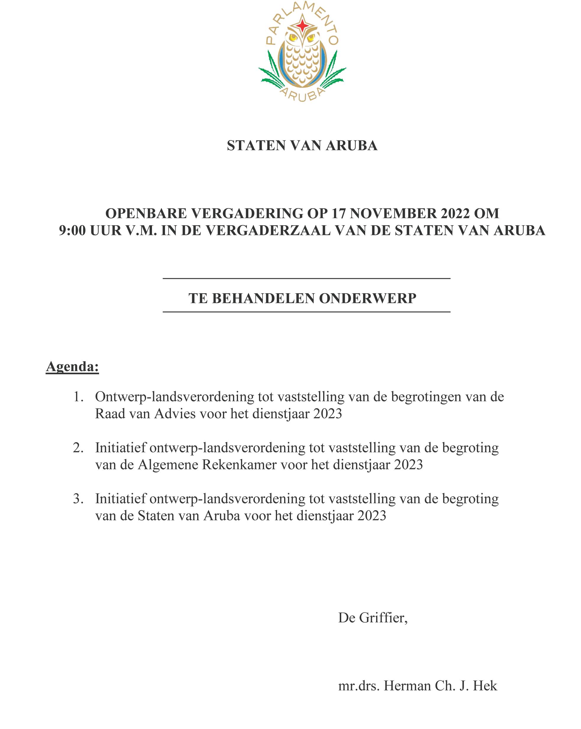 Dia 1 di september a entrega presupuesto 2023, algo historico cu despues di 15 aña a sosode. Mas ainda cu entrega na tempo e ta un presupuesto cu un Surplus di 63 miyon florin pa Pais Aruba. E