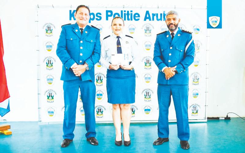 Sra. P. PEREZHENRIQUEZ nos personal administrativo a wordo promovi di klerk eerste klasse pa Hoofdklerk. Un grupo grandi di Polis awor ta haya mas responsabilidad y ta wordo promoví for di
