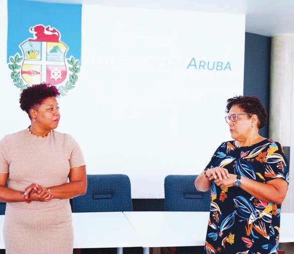 Sra. Jumira Spier, Sra. Audry Vasques, Sra. Mirscha Winterdal, y Sr. Henry Barrera tabata presente unda a presenta e material di educacion tocante bienestar di cacho na Minister Endy Croes, Minister Ursell Arends y directora di Departamento di Enseñansa di Aruba
