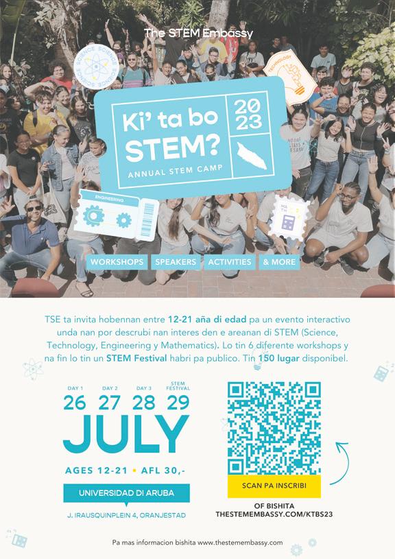 E aña ‘ki TSE ta invita e pueblo di Aruba na e di dos STEM summer camp: “Ki’ Ta Bo STEM? Aruba 2023” pa muchanan entre 12-21 aña di edad y lo tuma lugar dia 26-29 di juli na Universidad di Aruba.
