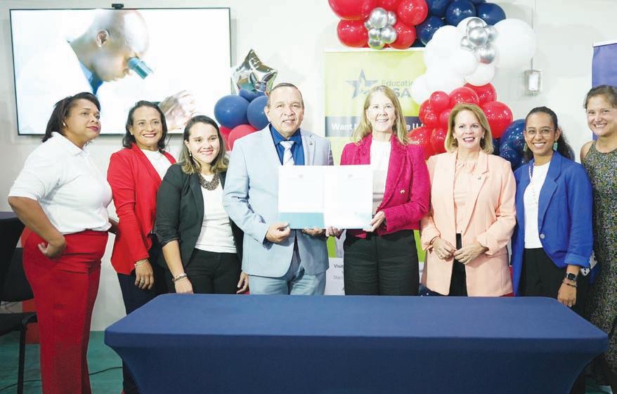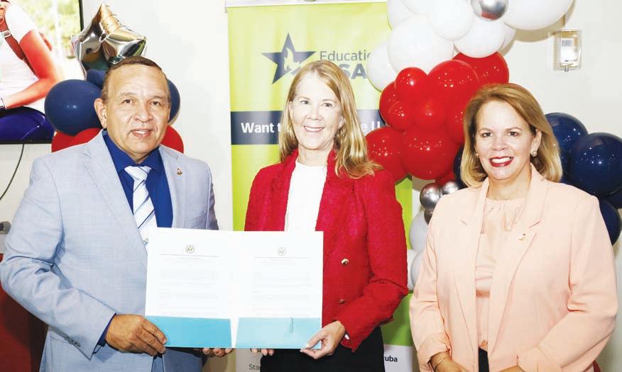 Evelyn Wever – Croes, directora di Departamento di Enseñansa Sra. Anne Marie Proveyer – Groot, inspector general di Enseñansa Sr. John Hessen, miembronan di Consul General di Curaçao, conseheronan di EducationUSA y demas