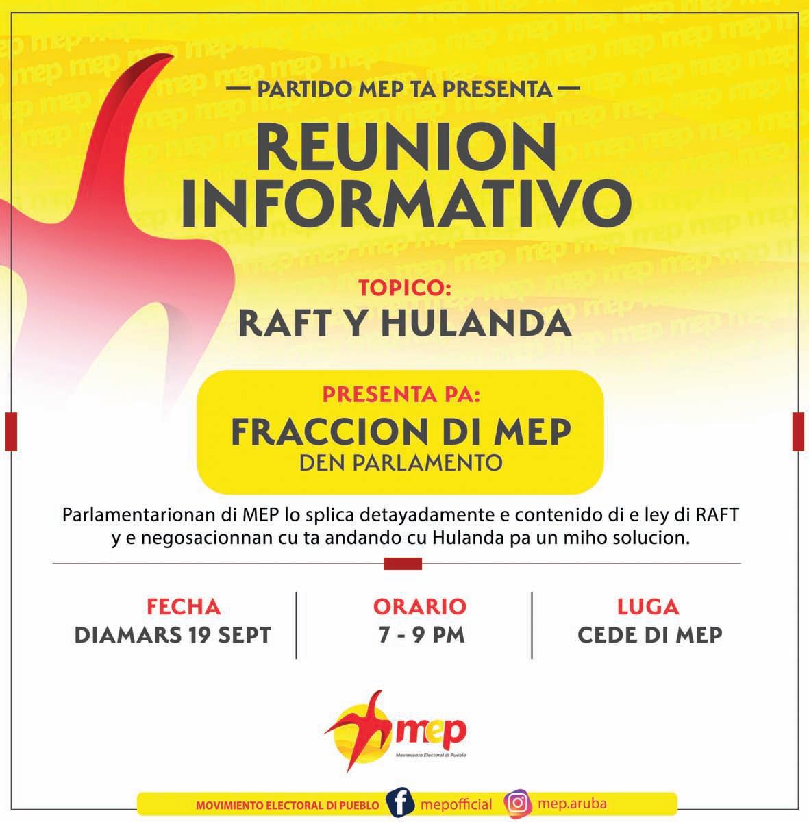 Den conferencia di prensa di Gobierno di Aruba, dialuna mainta, Prome Minister Evelyn Wever-Croes a elabora riba Raft y negosacion cu Hulanda. Un tema cu ta hopi actual pa motibo cu na Oktober 2023 e debe cu pais Aruba a presta for di Hulanda di AWG. 916 miyon ta vence y sea nos mester paga of refinancia.