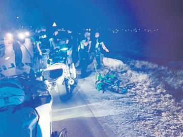 Pabou di rotonde di Bowling polisnan a logra stop e. E brommer no tawata tin plachi number y e motociclista a wordo deteni e momento ey.