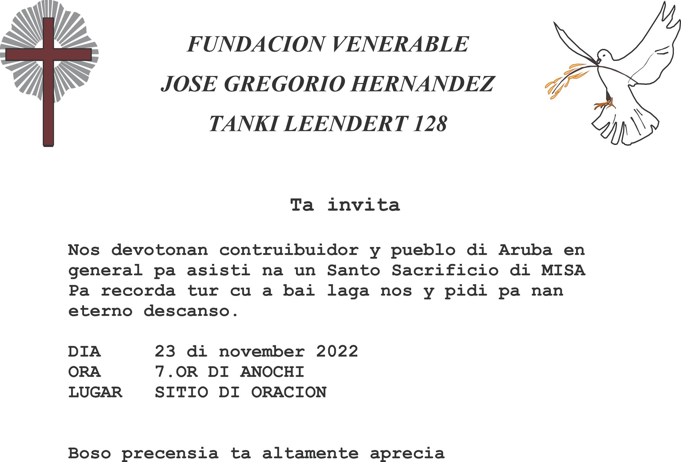 Ta invita famia, amigo y conocinan pa asisti na acto di entiero cual lo tuma lugar Diahuebs 24 di november 2022 pa 2’or – 4’or di atardi na Misa Inmaculada Concepcion na Santa Cruz