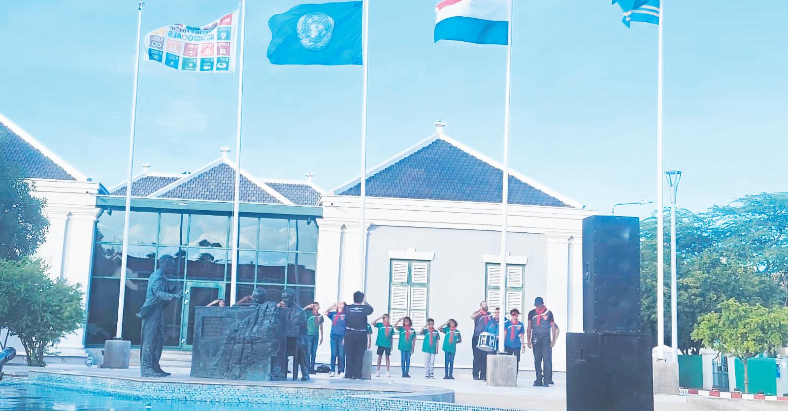 Por ultimo, por bisa, cu ta purba riba diferente tereno pa cuida nos muchanan y nan derechonan, dunando asistencia na e mayornan y guiadonan cu tin cu percura pa esaki. Minister Tjon a gradici tambe colega Minister di Enseñansa y Deporte, sr. Endy Croes pa su presencia, pero tambe na tur e mayornan, docentenan, representantenan di IBISA, representantenan di Grupo Scouting, tur fundacionan, organicasion, prensa y particularmente na nos heroenan di cambio y cada muchanan cu a haci e atardi, uno special.