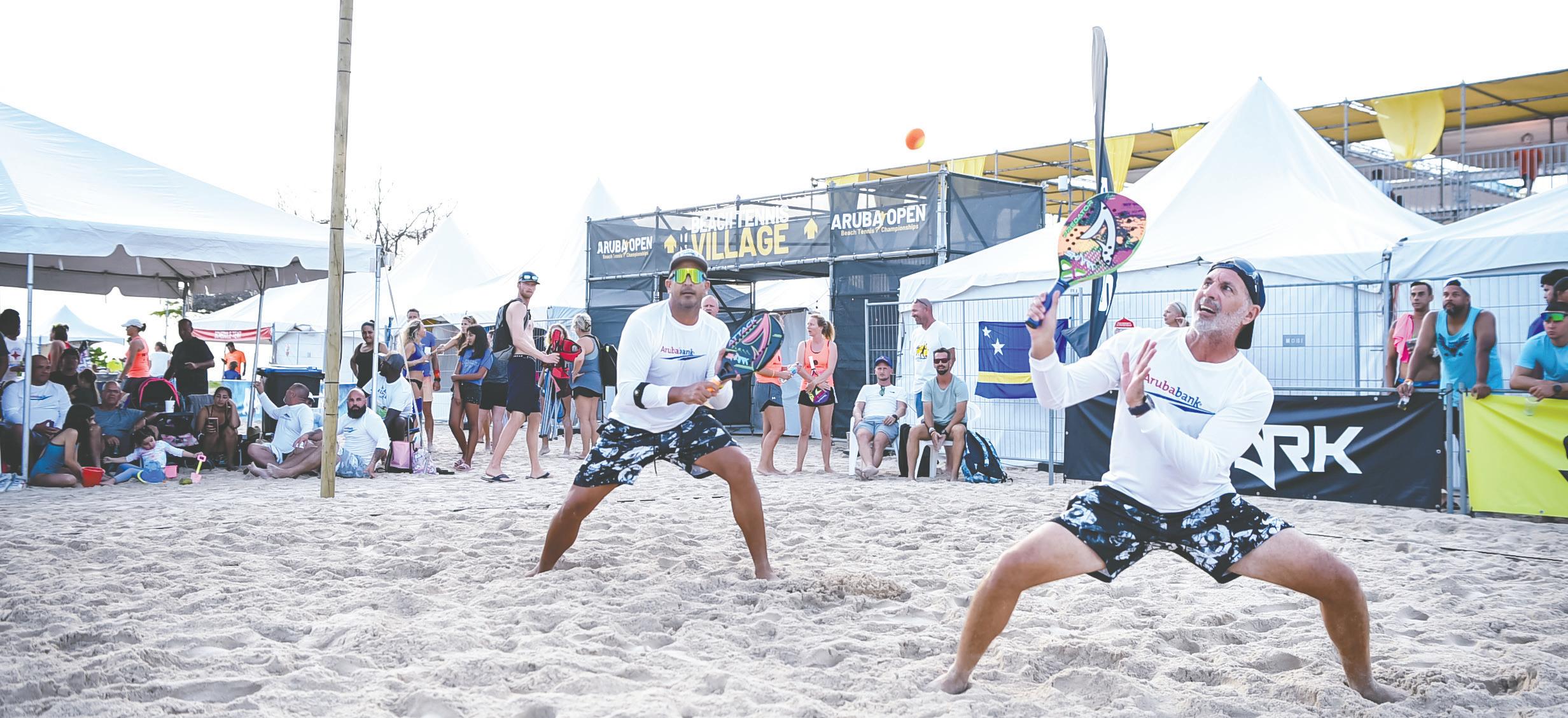 Aruba Bank a sobresali den nan bueltanan den e campeonato cu a conta cu no menos di 20 competencia riba 12 corte permanente. Nos ta pendiente pa e “Aruba Bank Beach Tennis teams” y nan “come back” na e Aruba Beach Tennis