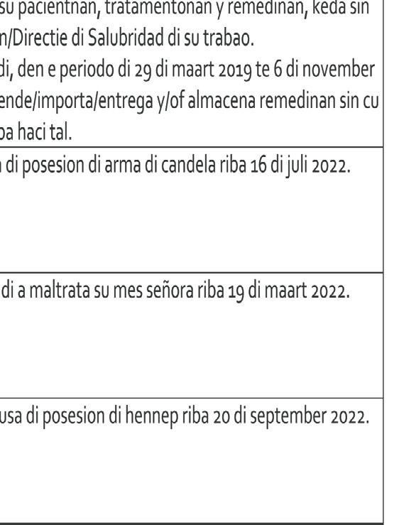 pa despues bandona Parlamento bek. Nos ta lamenta e hecho aki masha profundo. E homber chikito si e tuma esaki como ehempel (voorbeeldfunctie) sigur su hefe lo desconta su dianan di trabou for di su salario y te hasta lo kite for di trabou.