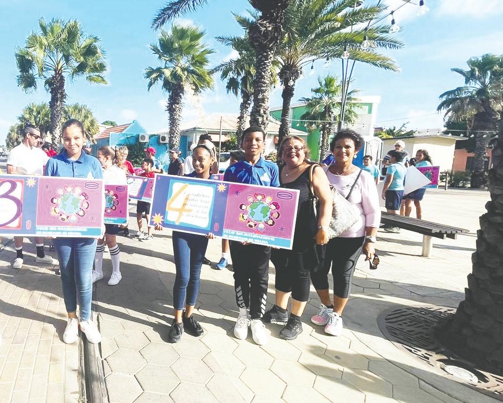 - Den fin di siman, Ministerio di Husiticia y Asuntonan Social a organisa e “marcha pa nos derechonan” un biaha mas, cual ta netamente un marcha en conexion cu dia internacional di Derecho di Mucha. Dia 20 di November, ta dia internacional di Derecho di Mucha, y pa pone enfasis riba e importancia di esaki, a marcha un bes mas, asina demostrando Aruba y mundo henter cu mucha tambe tin nan derechonan, y e ta hopi importante pa