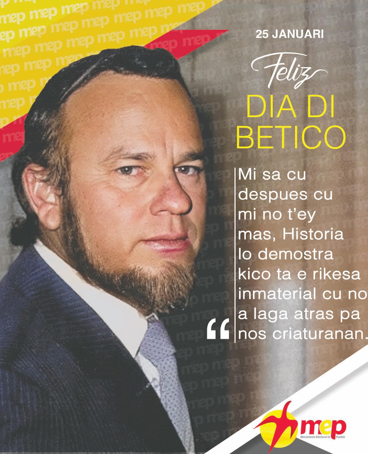 Partido MEP ta spera cu e memoria di Betico lo keda bibo den curason di cada Arubiano y cu tur aña e pueblo lo sigui recorda e estadista inmortal Betico Croes riba su fecha natalicio.