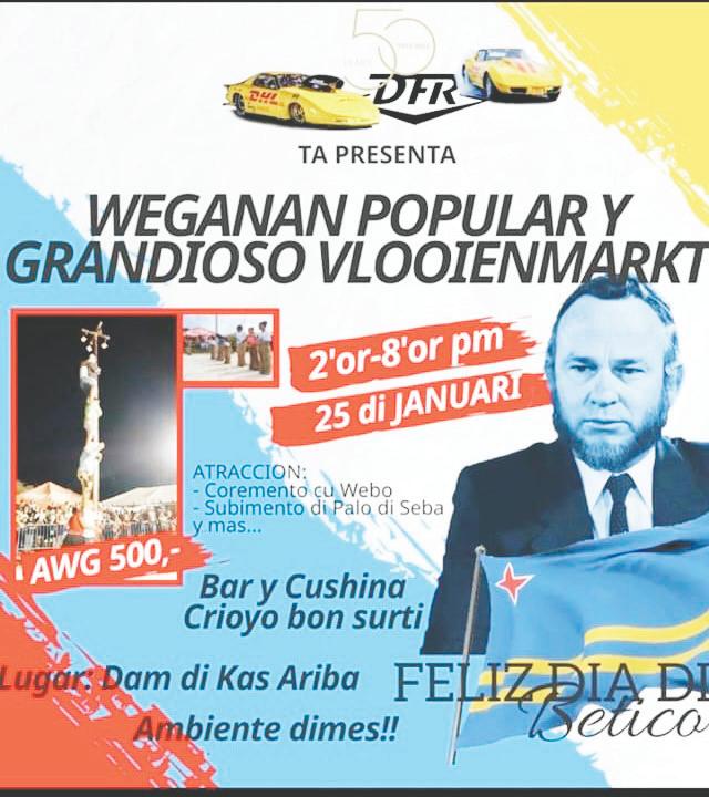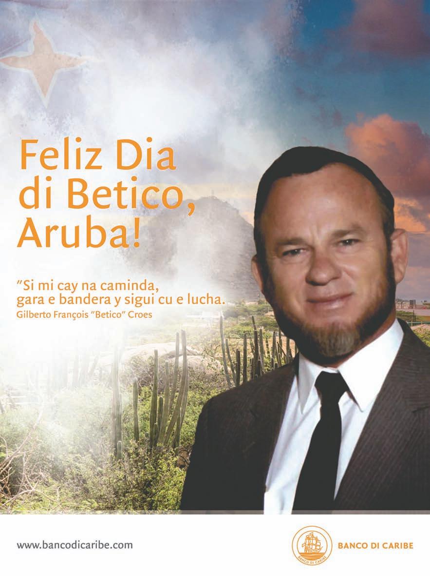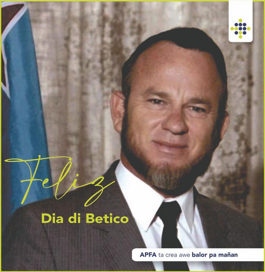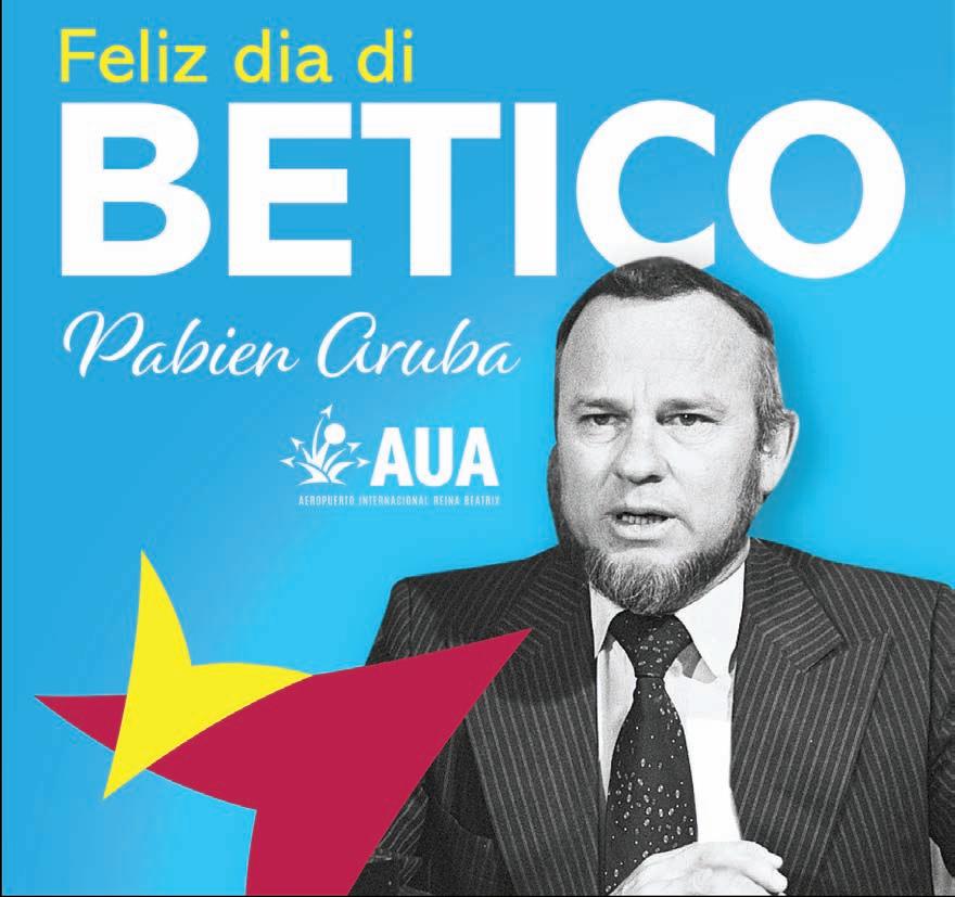 Betico cu Status Aparte a logra pa Aruba tin su propio: gobierno, parlamento, gobernador, procurador general, banco central, moneda, himno, bandera y ortografia. Pues, a laga un herencia valioso pa nos y manera Betico a bisa na su yegada for di Hulanda: “Laga locual nos a logra awe ta un clompi diamanta”. Dia cu nos Status Aparte mester wordo menasa atrobe, esaki ta significa guera. Danki Betico. Ban celebra Dia di Betico en grande y traspasa e bunita historia aki pa nos yiunan y nos futuro generacionnan.