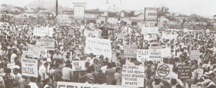 Aruba ta logra Status Aparte: Dia 12 di maart di aña 1983 durante Conferencia di Mesa Redonda na Den Haag, Ruud Lubbers a expresa na final e palabranan historico: “De Kogel is door de Kerk”. Akinan Betico y delegacion den nomber di Aruba a logra convence