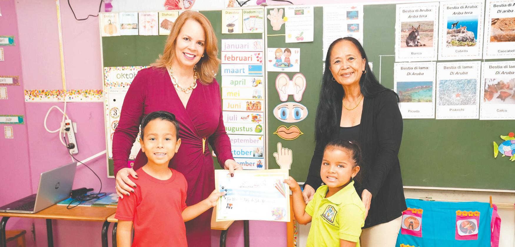 Prome Minister Wever - Croes a expresa cu e ta un honor pa a bishita e scolnan y scucha tur locual e muchanan tocante Ley di Cacho a traves di e competencia di pintamento. E muchanan a siña tocante cuido di cacho y e importancia pa cachonan ta mara (na ‘leash’) ora cu sali cu nan pafo di cura pa su proteccion.