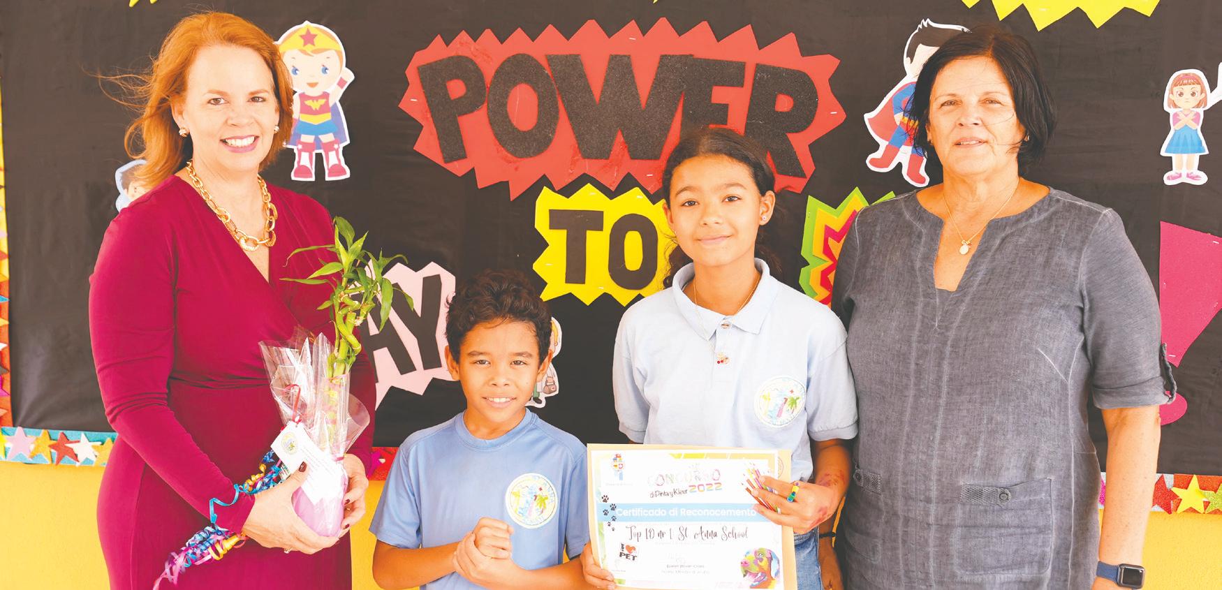 En conexion cu ‘Dia di Bestia’ 4 di october, tabatin un e concurso di pinta y kleur “Ley Di Cacho” 2022, Prome Minister Evelyn WeverCroes a haci un recorido na e Top 10 scolnan di cantidad di mucha cu a participa na e competencia di pinta y kleur, pa consientisacion di ley di cacho. Prome Minister a entrega un certificado di participacion na e 10 scolnan aki.