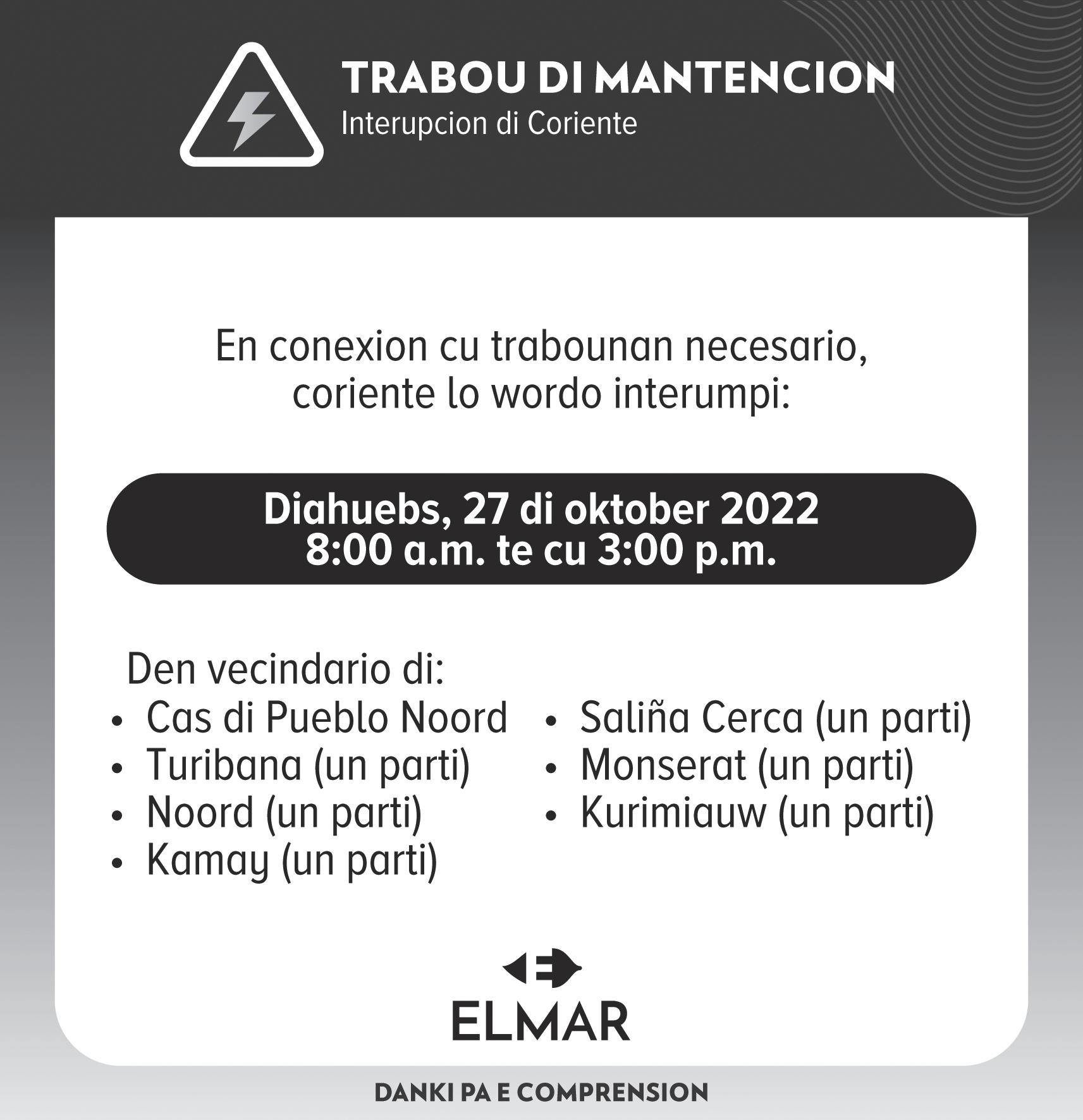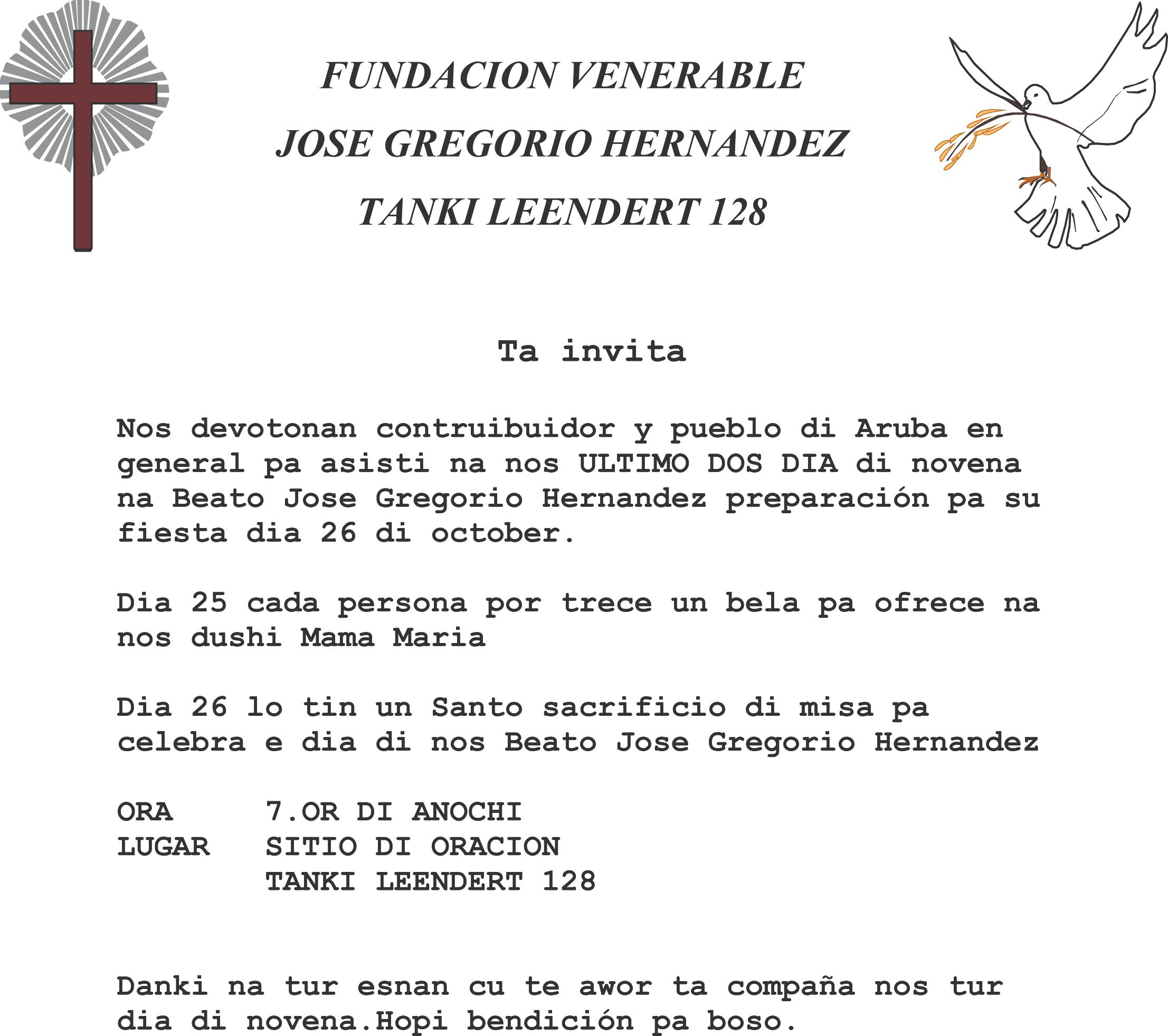 Ta invita pa asisti na acto di condolencia y ceremonia di despedida cu lo tuma lugar diamars 25 di oktober 2022 for di 2’or pa 4’or di atardi na Misa Birgen di Fatima na Dakota. Entiero lo tuma lugar na Santana Pastoor De Vries na Santa Cruz. Nos ta pidi disculpa si den nos tristeza nos a lubida di menciona nomber di un of mas famia.