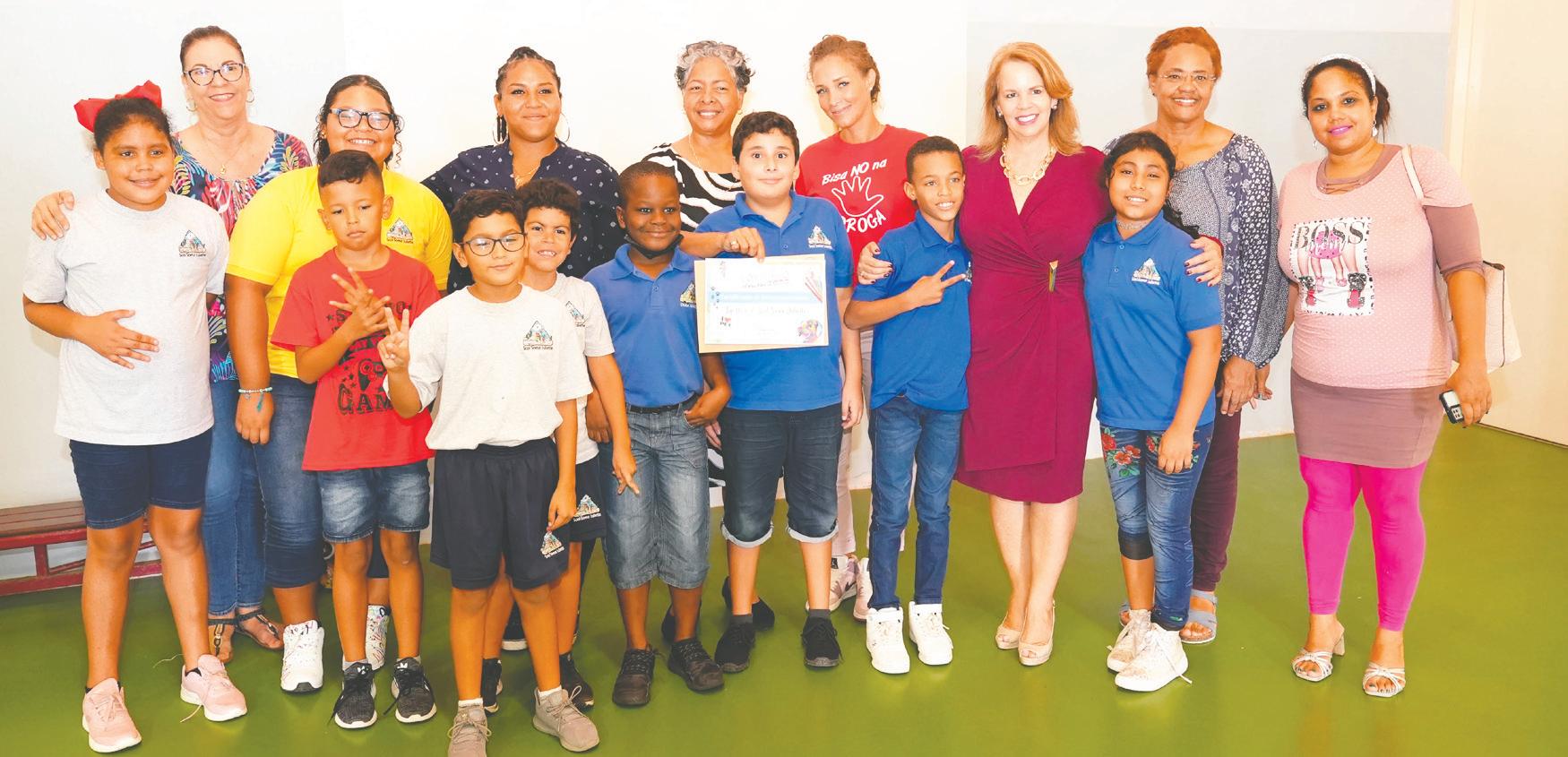 Anteriormente ya a reparti premio na esnan cu a gana cu pintura di mas bunita y awo Prome Minister a entrega certificado na e top 10 scolnan cu mas mucha a participa. E scol cu tabatin mas participante ta St. Anna School cu 139 participante. Por ultimo Premier - Wever - Croes a gradici e scolnan pa nan participacion y ta desea cu ta sigui mira participacion di scolnan na otro competencianan den futuro pa sigui aumenta conscientisacion cerca nos muchanan.