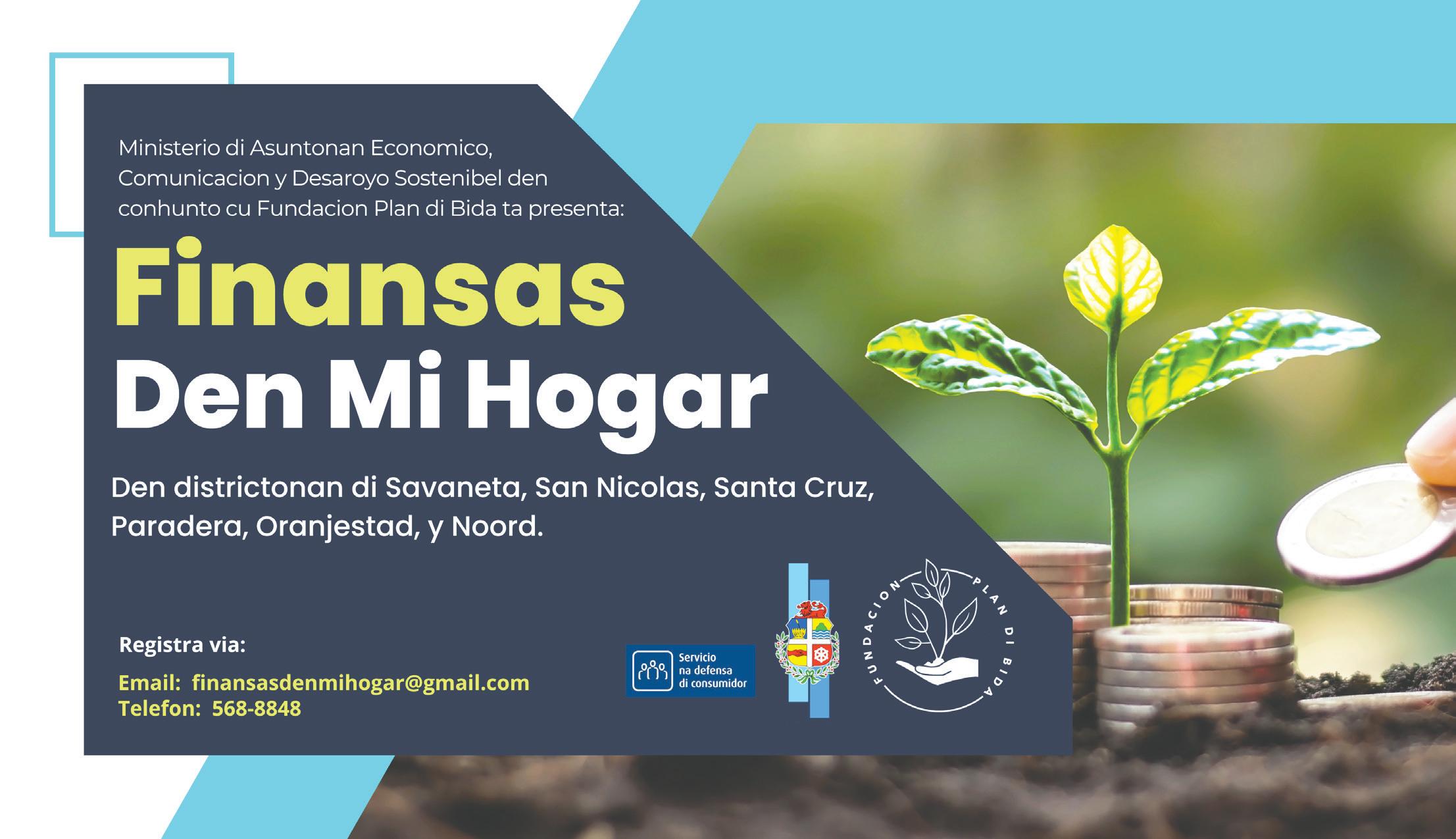 Pa mas informacion y registracion por tuma contacto cu Fundacion Plan di Bida via telefon 5688848 of email finansasdenmihogar@gmail. com