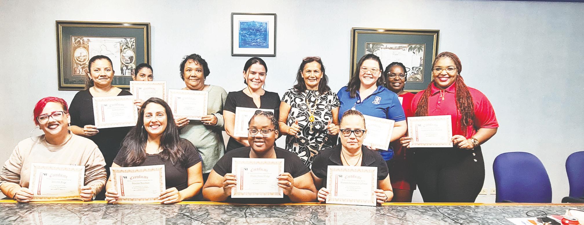 Esnan cu a ricibi un certificado ta: Jennifer Caminata RosalesKelly, Yvanise Lake, Elizabeth Yarzagaray, Rashid Tromp, Eldrith Wever, Lourdes Noguera, David de Kort, Sharline Hayes, Ashley Rodriguez, Clarette Quandus, Jennifer Roga, Soraya Britten, Lisbeth Mora, Nathalie da Costa, Desiree Nicolaas, Roselenn Croes, Shareen J. Cid Cabrera, Kathleen Kelly, Geneviève Melaria y Sharis Anais Illidge. Un palabra di felicitacion ta bai na tur cu a ricibi nan certificado.