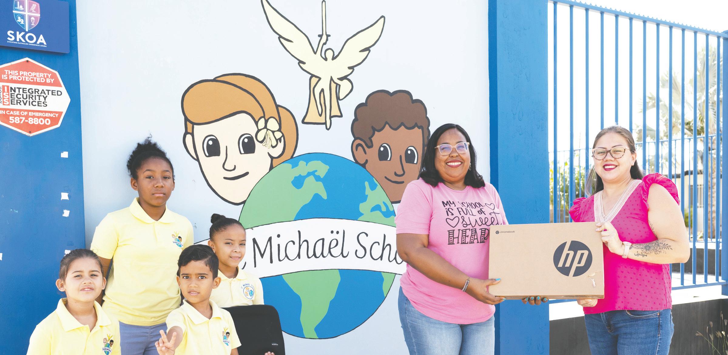 25 di october 2022 - Aruba Bank a haci donacion di chromebooks y 2 Smart TV 65” na Sint Michael School pa yudanan den nan proceso di digitalisacion. Sint Michael School ta un scol basico di 6 klas, situa den e bario