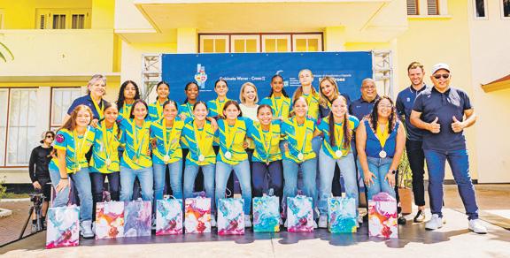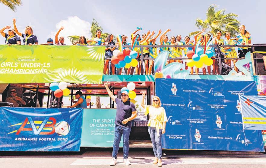 ORANJESTAD - Diasabra mainta Prome Minister Evelyn Wever-Croes a acompaña Minister di Deporte Endy Croes pa duna reconocemento na e mucha muhenan di e seleccion Girls U15 cu a logra e titulo maximo di e torneo di Concacaf teni na Aruba. Presente dilanti Bestuurskantoor tabata e mayornan, famianan y amigonan, como tambe e presidente señor Randolf Lacle y representantenan di Aruba Voetbal Bond (AVB).