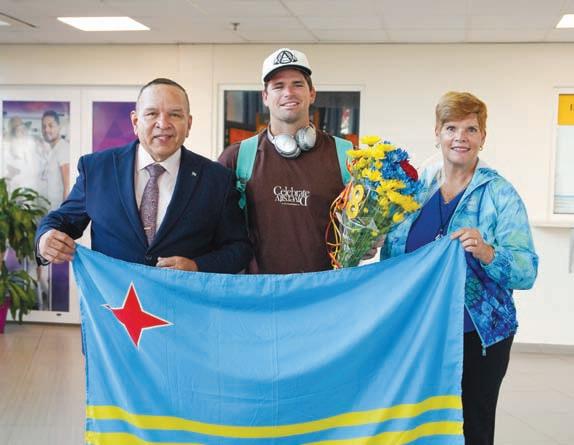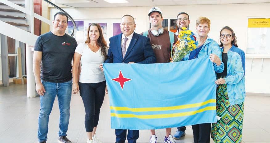 Hoevertsz, miembro di Direccion di Deporte di COA Sr. Jonathan Wever, famia y amistadnan a acudi na Aeropuerto Internacional Reina Beatrix pa ricibi atleta Ethan Westera. Ethan Westera di 26 aña di edad a representa Aruba den Windsurf Olimpico 2024 na Marseille, Paris y keda na di ocho (8) luga den e competencia di windsurf, unda a competi cu un total di 24 pais.