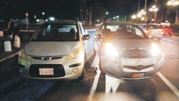 chauffeur burachi den un Hyundai i10 a subi e crusada bay pabao sin a duna preferencia na e Toyota Vitz tambe bayendo pabao pero cu preferencia, aunke e chauffeur di e vitz a purba kita pero e impacto tabata