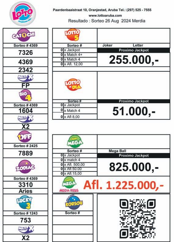 • MFA Paradera: 6 di September 2024, 6:00 PM – 7:00 PM