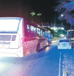 Avenida Nelson O.Oduber - Diadomingo anochi polis a topa un boksmento entre un bus di Arubus y un Toyota Yaris.