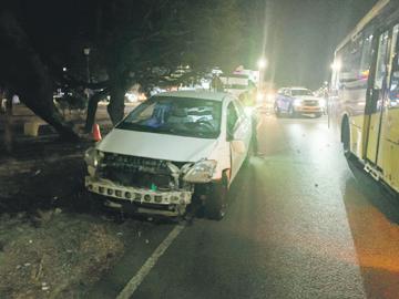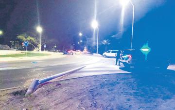 - Diadomingo den oranan di atardi polis a bay pazuid di rotonde di Palm Beach, pa un auto cu a dal contra un palo di luz.