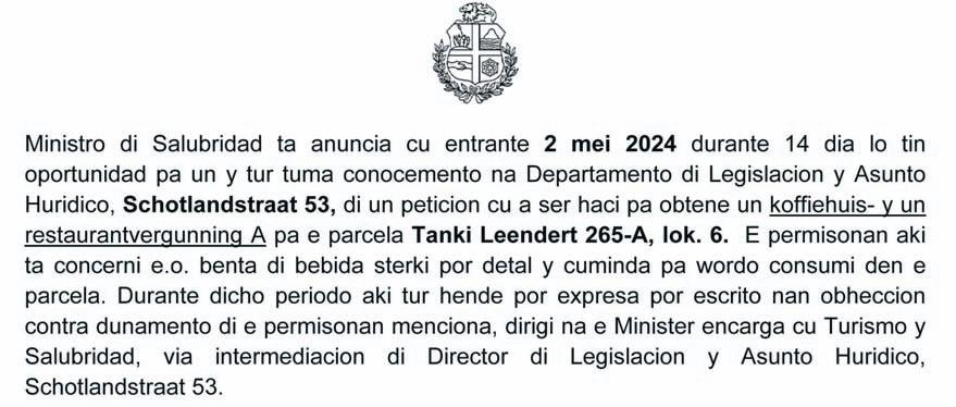 habitatnan importante na diferente locacion di nos isla. Tambe ta haci un suplica grandi na e dirigentenan pa no kibra e Plan di Desaroyo Espacial (R.O.P of Ruimtelijke Ontwik-