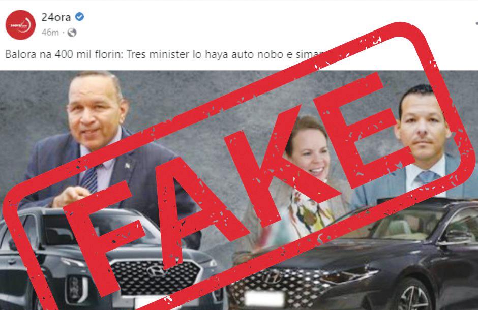 Segun un noticia treci dilanti pa e dos loconan di 24Ora, Gobierno di Aruba a cumpra autonan di 400 mil florin. Esaki no ta berad. Gobierno no a cumpra ningun auto y tampoco pa 400 mil florin.