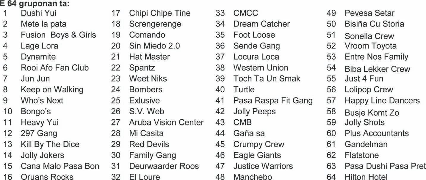 de Windt, van der Weide, Bislip, Maduro, Tromp, Quandt, Nicolaas, Caldeira, Estrada, van Trikt, Swaen, Rodulfo, Vis, Hart, Oduber, Daas, Arends, Henriquez, Chirino, Schmidt, Geerman, Robert, Vangansewinkel, Kipp, Lopez, de Graaf, Peterson.