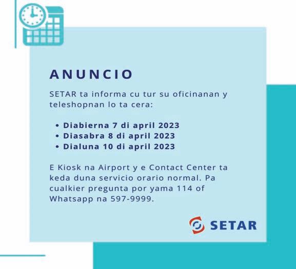 DIA DI PASCO DI RESURECCION: S.S. di Misa ta pa 9’or di mainta. Prome cu SS di Misa tin bendicionamento di awa na Cas Parokial. NO TIN MISA ANOCHI 7’OR. NOBENA