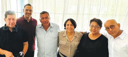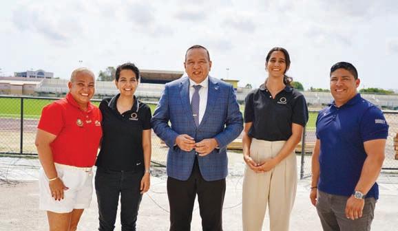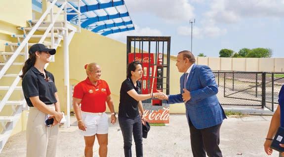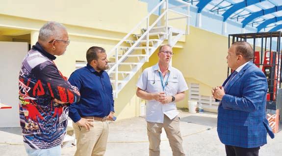 Sr. Randolph Lacle, Sr. Hubert Solagnier y contratista a reuni cu e representantenan di CONCACAF Sra. Aline Arouesty di Mexico y Sra. Anne Marie van Beusekom di Guatemala cu tabata na Aruba pa un “site visit” di GPT Stadion Dakota.