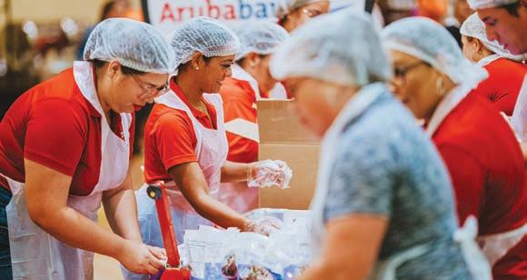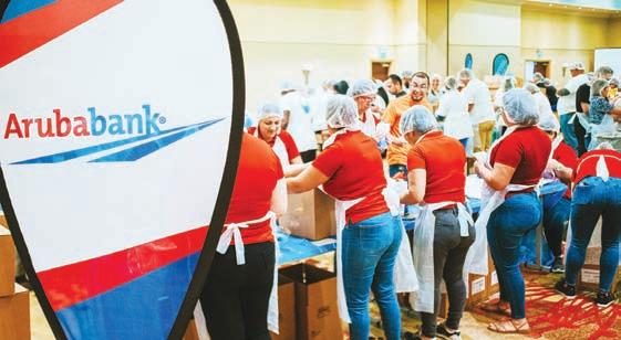 Un grupo bon anima di empleadonan di Aruba Bank a participa activamente cu “meal packaging”, representando e balornan fundamental di compromiso comunitario y responsabilidad social di e banco.