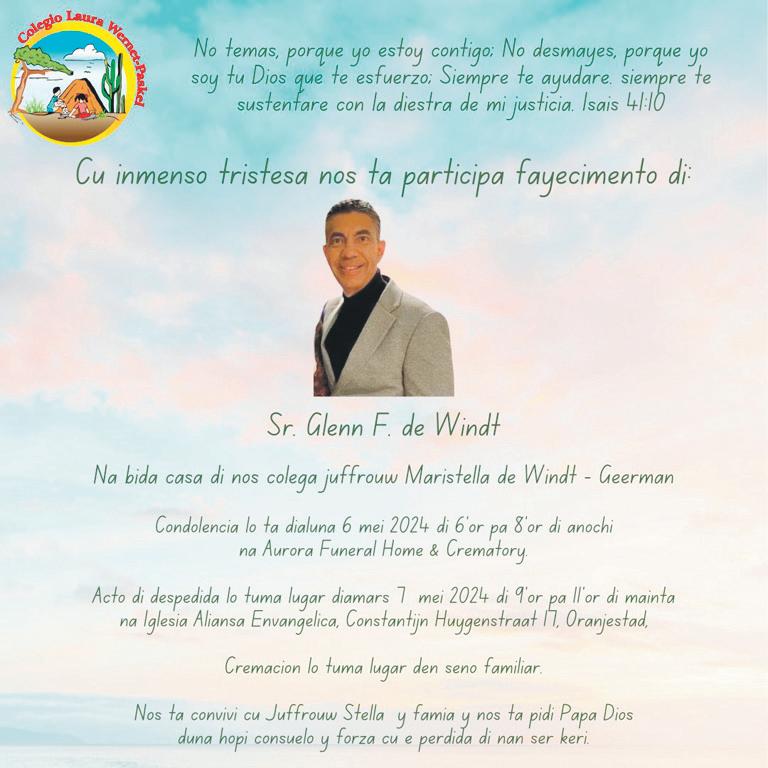 Di profundo di nos curason nos ta gradisi tur hende cu di un of otro manera a mustra atencion, amor y cariño durante bida, fayesimento y despedida di nos defunto stima: Boso muestra di atencion ta di gran sosten pa nos.