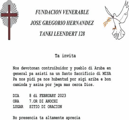 Alabes nos ta invita famia, amigo(a) nan, bisiña y conocirnan pa 3 Santo Sactrificio di misa cual lo tuma lugar na Misa