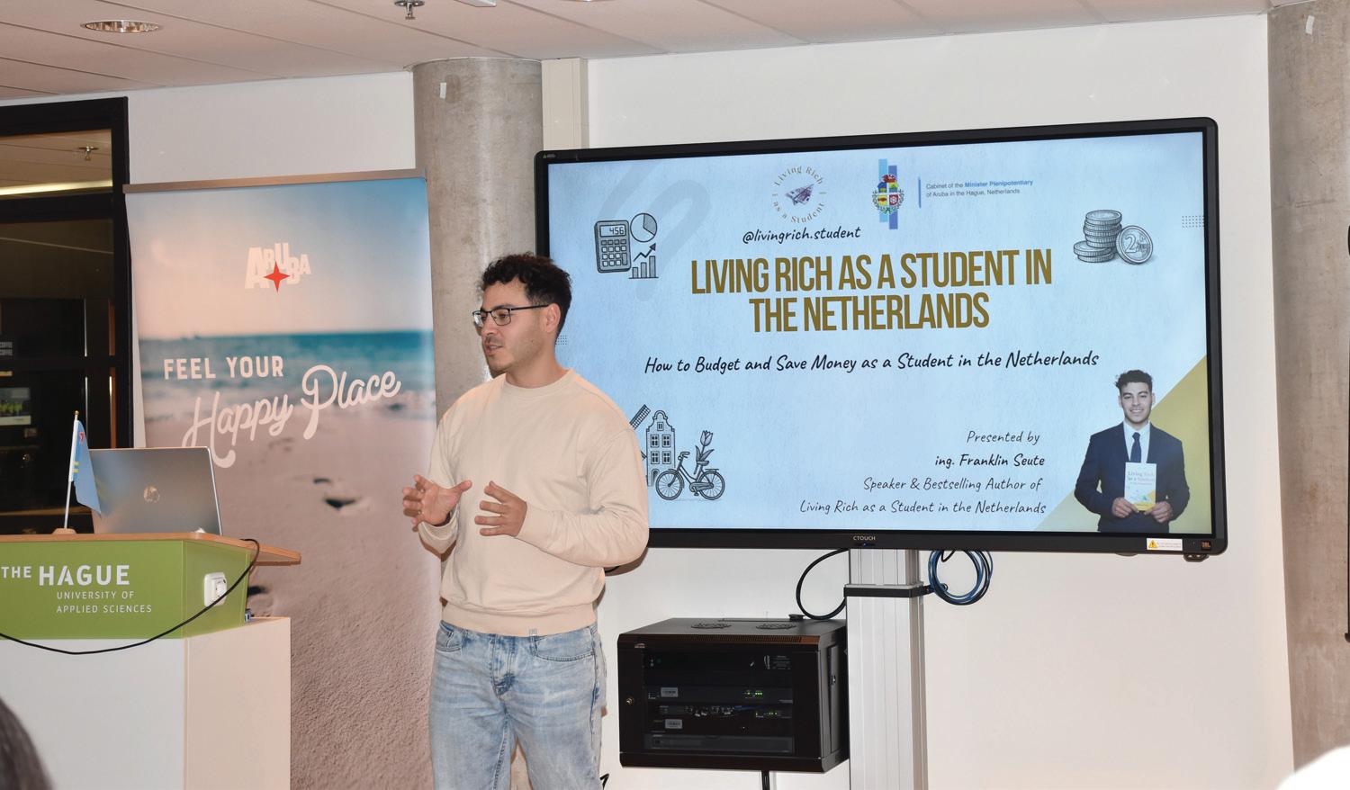 E programa a consisti di dos orador unda e prome tabata Franklin Seute, autor di e buki “Living Rich as a Student in the Netherlands” y fundador di e plataforma “Living Rich as a Student” cu ta yuda studiante pa haya