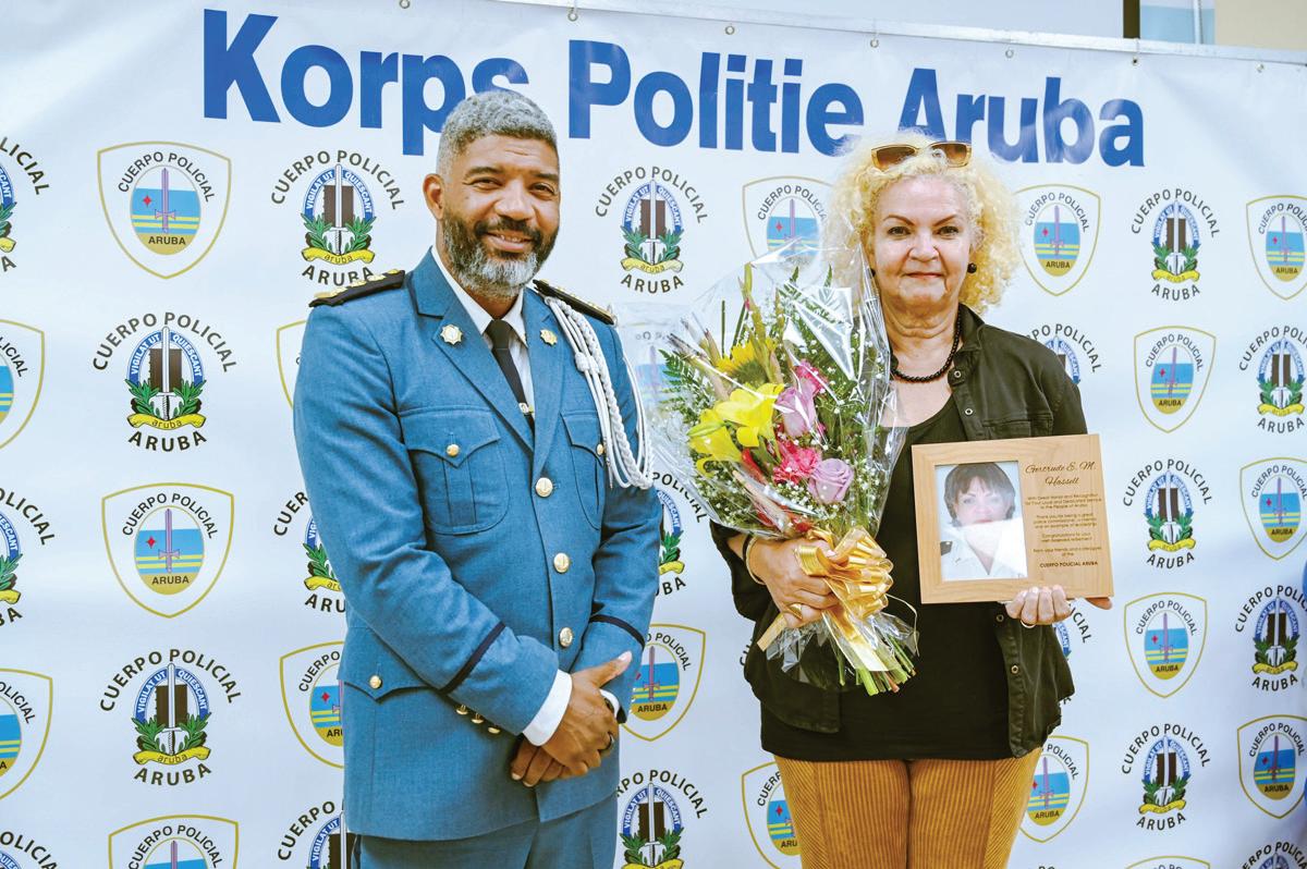 “Mi ta gradici tur e agente policialnan pa nan sosten. Tabata un honor pa mi di a traha pa Cuerpo Policial Aruba y pa ta band’i boso. Danki pa permitimi di ta boso Comisario di Polis Uniforma pa 22 aña.” Tabata palabranan di sra. Trudy hopi emociona pa su ultimo encuentro oficial cu Cuerpo Policial.