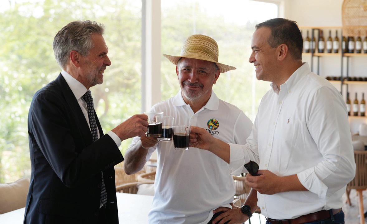 y su delegacion, acompaña pa minister Geoffrey Wever, a bishita Alto Vista Winery y chicken farm, un iniciativa