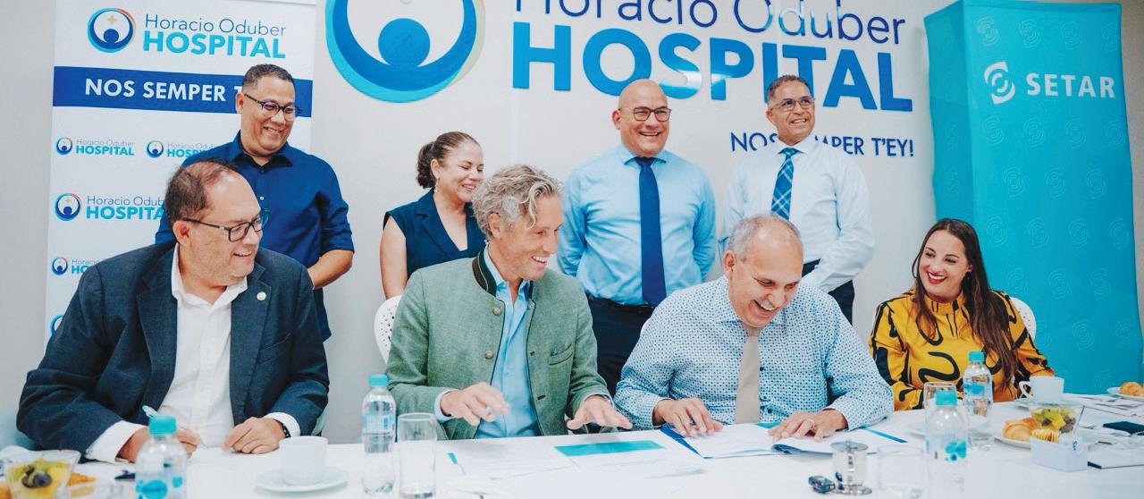 Algun luna pasa Horacio Oduber Oduber (HOH) a anuncia e proyecto importante pa loke ta implementacion di su sistema electronico di pashent (EPD) nobo di e compania Hulandes Chipsoft cu e programa HiX. Un paso importante den loke ta optimalisacion di procesonan di data y cuido. E siguiente paso importante ta pa busca un compania pa ‘host’ e data di Hospital. Despues di a busca diferente opcion internacional, sr. Gregory Croeze, miembro di Hunta di Directiva di HOH a indica cu a haya e opcion na Aruba mes, esta nos compania local Setar NV. Durante un mainta ameno Directiva di HOH hunto cu Directiva di Setar a bini hunto pa asina concretisa e acuerdo aki. Sr. Jacco Vroegop, Presidente di Hunta di Directiva tabata sumamente contento cu a logra yega na un acuerdo cu nos compania local Setar NV. E enfoke di e acuerdo ta pa sigui mantene siguridad di informacion di nos pashentnan den e EPD nobo, cu tambe ta parti di e calidad di cuido cu hospital ta brinda.