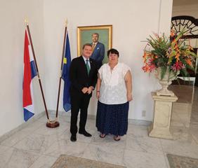Antiyas Hulandes y actual Minister van Staat, un figura respeta pa su amplio conocemento den maneho di gobierno insular. Tambe a tene reunion cu sra. Maria Liberia-Peters, tambe exProme Minister di Antiyas Hulandes y Minister van Staat, pa fortifica e laso y colaboracion entre Aruba