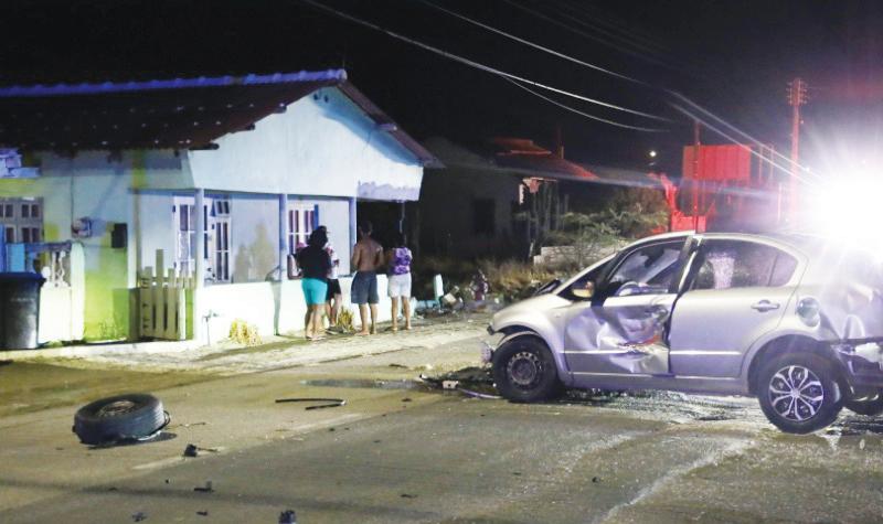 Polis a yega net na e t-kruising cu Grote Bergweg y ta mira un Suzuki Sx cu hopi danjo material. E chauffeur