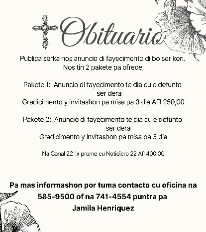 caritativo. “Nos palabranan di consuelo y convivencia ta cu henter famia Wyatt,” Prome Minister mr. Mike Eman a conclui.