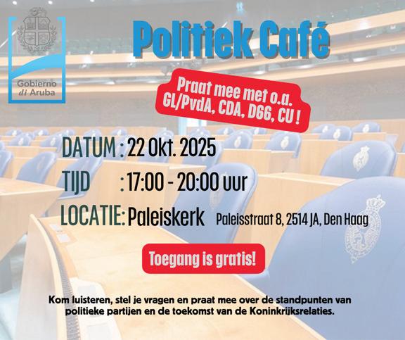 E evento aki lo ta diaranzon 22 di October di 5or te cu 8or di anochi na Paleiskerk. Entrada ta gratis y esnan interesa por inscribi via e link aki: https://www.eventbrite. nl/e/politiek-cafe-tickets-