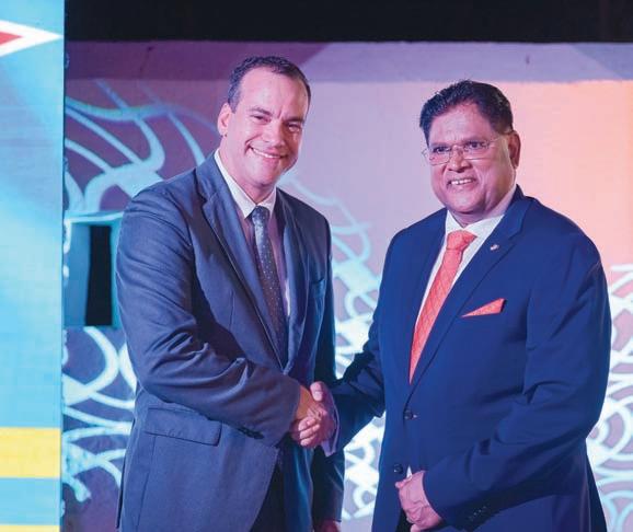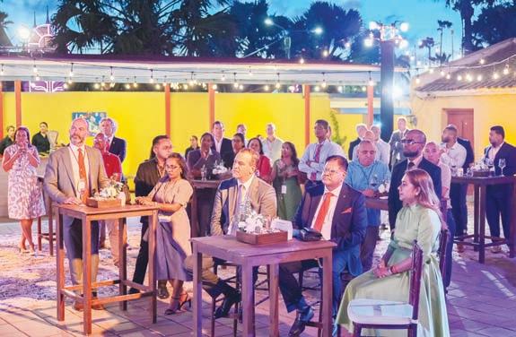 Durante e “Business Mixer” den cuadro di bishita di presidente Santokhi di Republica di Surnam, minister Geoffrey Wever a elabora riba e deseo mutuo pa intensiva e cooperacion economico cu Surnam. Durante presidente Santokhi su bishita, Gobierno di Aruba a firma un “Memory of Understanding” cu Surnam. E “Memory of Understanding” ta e resultado di e mission comercial cu Ministerio di Asuntonan Economico hunto cu Camara di Comercio y Aruba Trade and Industry Association a eherce pa Surnam den juni 2024.