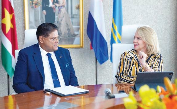 Durante e reunion cu Prome Minister, President Santokhi a enfatisa cu el a keda sumamente satisfecho cu e bishita y ta impresiona cu e trabou cu Gobierno di Aruba ta haciendo pa e pais.